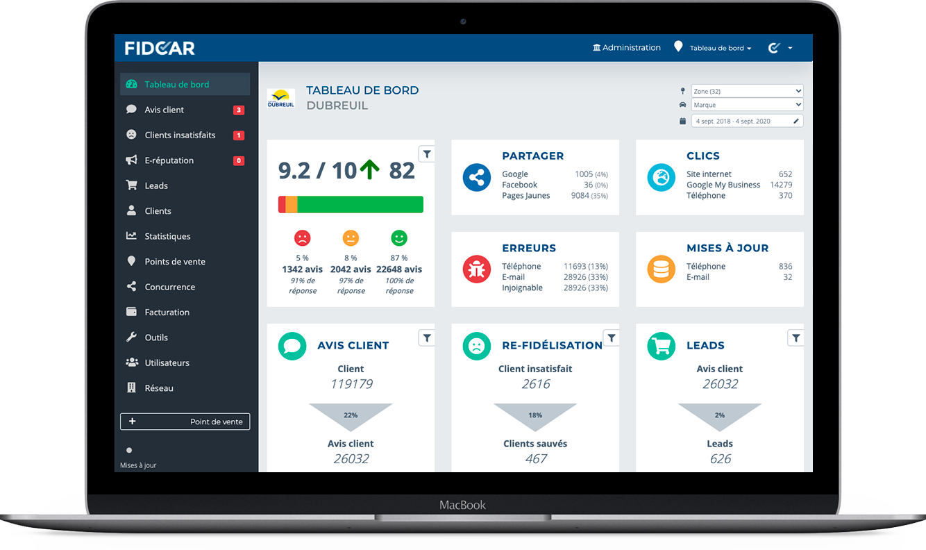 Fidcar Certified vous permet d'améliorer vos notes Google, Pages Jaunes et Facebook dès les premières semaines d'utilisation.